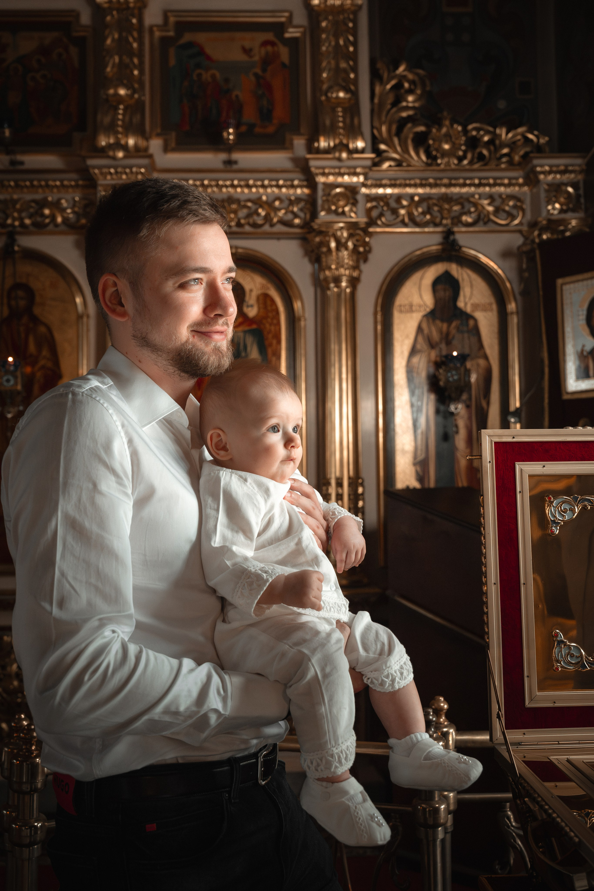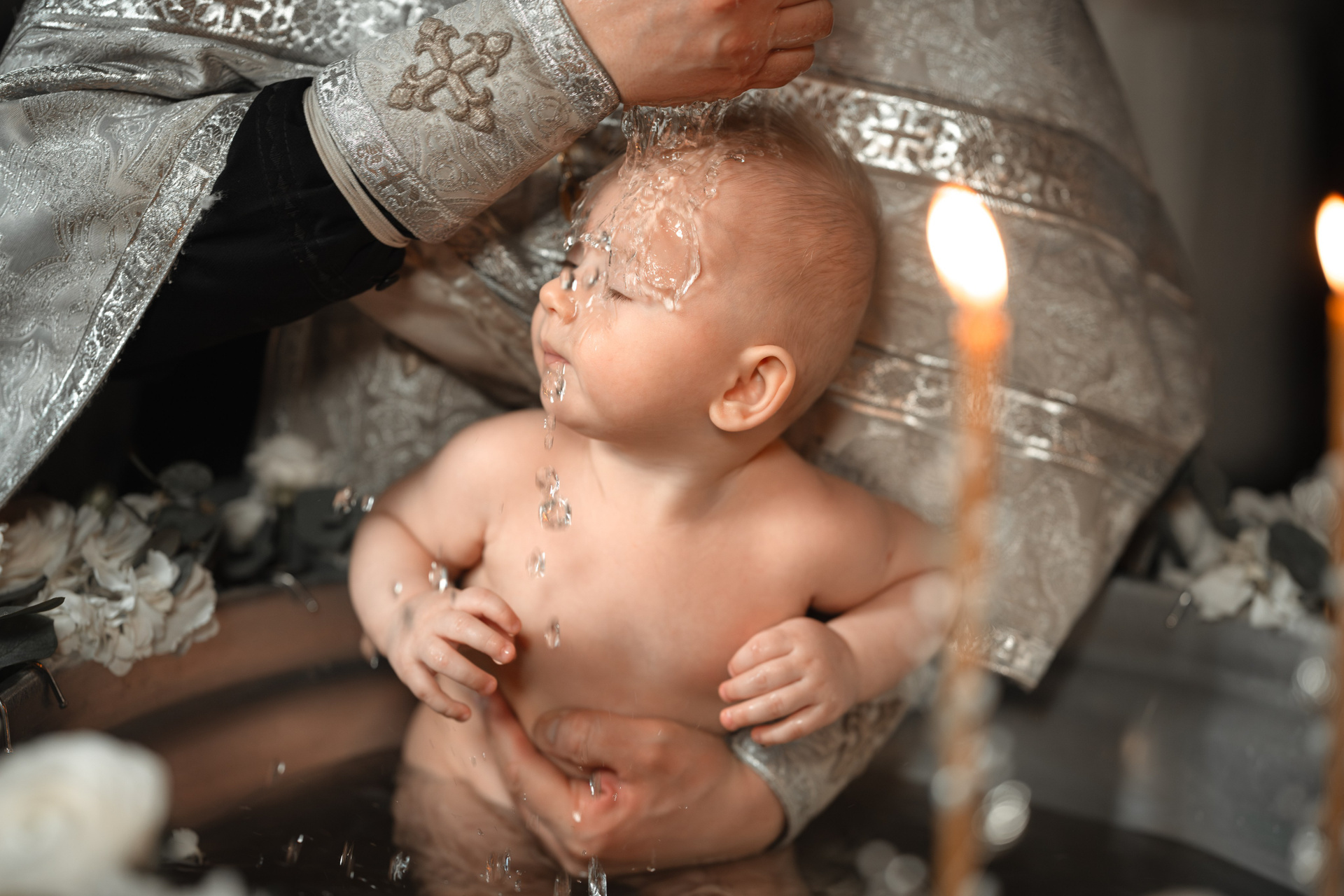 Крещение маленького Роберта у отца Сергия. Дружная семья, неторопливое крещение, хорошее настроение малыша, вот...